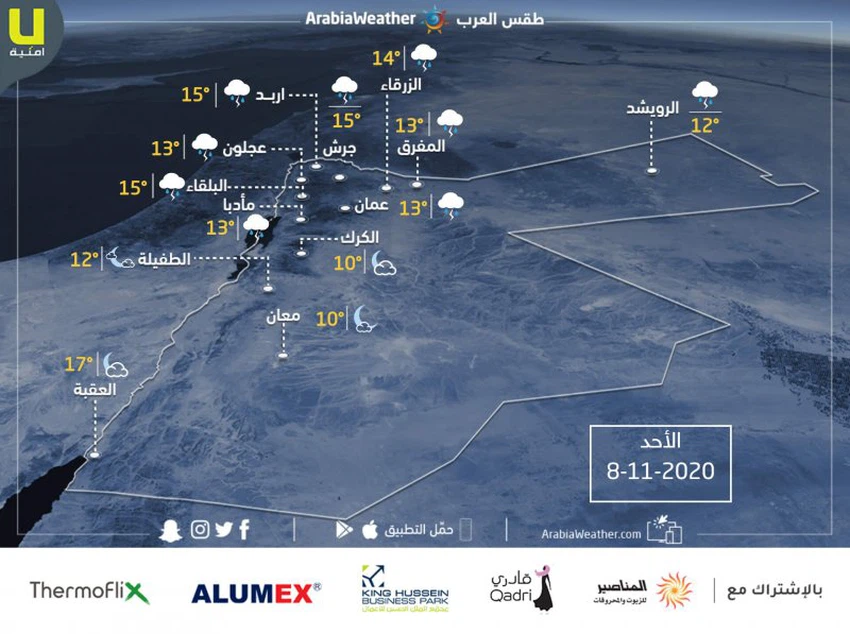 درجة الحرارة العظمى المتوقعة في الكرك: °18