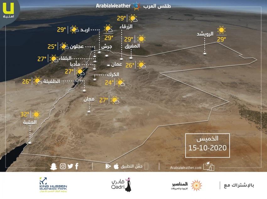 درجة الحرارة العظمى المتوقعة في المفرق: °29