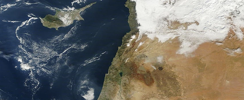 و قد قام مركز "طقس العرب" الإقليمي للأرصاد و التنبؤات الجوية بدراسة حول واقع الموسم المطري في دول شرق البحر الأبيض المُتوسط و التي أفرزت نتائج خلصت بتعرض السواحل السورية و اللبنانية لجفاف شديد غير مسبوق، و بدا الأمر واضحاً و جلياً فوق جِبال لبنان التي كان الرداء "البني" هو سيد الموقف و لا ثلوج مُتراكمة، حيث في العادة ما تستقبل المنتجعات في جِبال لبنان أعداداً كبيرة من الزوّار في مثل هذا الوقت من العام للتزلج و مُشاهدة الثلوج.
