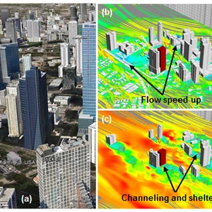 وبصفة عامة توجد شكل معادلة يستخدم لحساب سرعة الهواء عند إي ارتفاع بأي من المواقع الثلاثة المختلفة سابقا وهي V=Vm(h/hm)rp m/s حيث: V: متوسط سرعة الهواء عند أي ارتفاع Vm: متوسط سرعة الهواء المعلوم عند الارتفاع Hm Hm: الارتفاع المعلوم. Rp: معامل خشونة السطح والذي يساوي : 0.15 في المناطق المفتوحة. 0.29 في ضواحي المدن الصغيرة . 0.45 في منطقة وسط المدينة . وايضا بعض المعماريين يفضلون استخدام وردة الرياح لانتاج صورة شاملة وسريعة القراءة لاستخراج ملخصات سريعة عن الرياح في اي منطقة