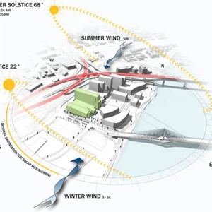 اما على مستوى التصميم الحضري فان اشعة الشمس تتحكم بتوجيه المدن بشكل كامل في بعض الحالات لاكتساب الانارة الطبيعية وتوجيه المباني لافضل زاوية للاستفادة القصوى من أشعة الشمس، بالإضافة الى اختيار المواقع التي يكون فيها خلايا الطاقة الشمسية.