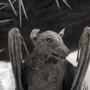 خفاش لقي حتفه على سطح البحيرة و تحول إلى تمثال
