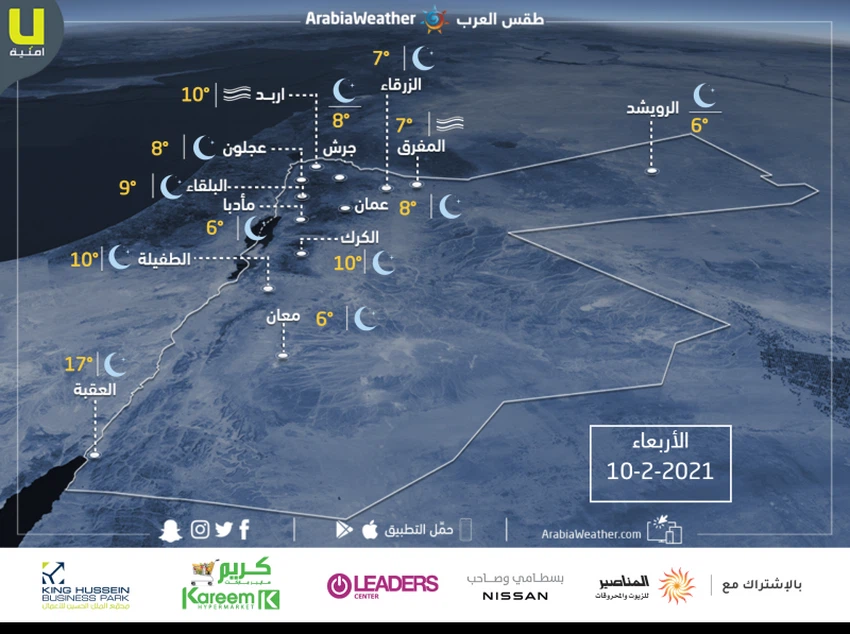 درجة الحرارة الصغرى المتوقعة في الكرك: °10