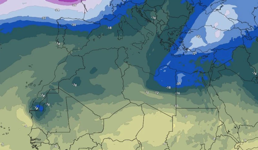 Et les données qui sont reçues et traitées dans les couloirs du centre "Météo arabe" indiquent que la masse d'air froid et humide dans les couches supérieures de l'atmosphère devrait se précipiter dans la région centrale de la Méditerranée et provoquer la dépression de la mer Rouge (Soudan ) en s'étendant vers le nord, générant avec lui un état d'instabilité. Le temps affecte, en commençant par les côtes orientales de la Libye, et affecte progressivement de grandes parties du nord de l'Égypte avec des orages pluvieux pendant le week-end, si Dieu le veut, ce qui augmente les chances de vallées et torrents coulant dans ces régions.