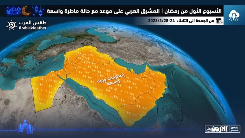 Dernières mises à jour : Un nouveau système météo apporte de la pluie sur de grandes parties de l'Est arabe pendant la première semaine du Ramadan