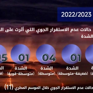 Météo d'Arabie - Le Centre météorologique régional arabe archive les événements météorologiques les plus importants et les données importantes pour la saison des pluies 2022/2023 sur une période s'étendant d'octobre à mai, dans le but de connaître les performances de la saison des pluies et aux fins de en y faisant référence dans le futur et en le comparant aux saisons d'hiver et aux saisons des pluies des années précédentes et suivantes, si Dieu le veut.