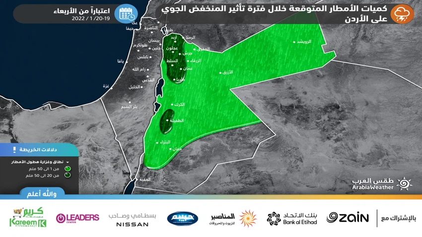 Météo arabe - Le Royaume étant touché par une dépression atmosphérique du troisième degré mercredi, de la pluie est attendue dans de nombreuses régions du Royaume, sous forme de neige sur les hautes hauteurs montagneuses, et on s'attend à ce que la dépression apporte des variations quantités de pluie après sa fin.