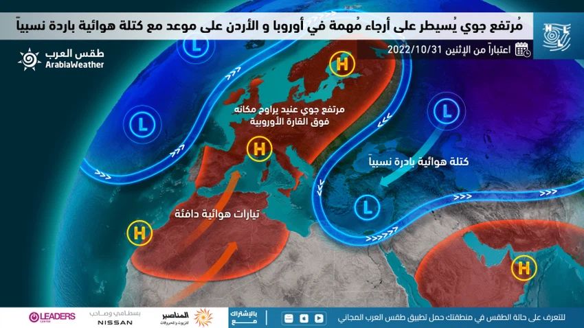 Concernant les détails, les spécialistes du Centre météorologique arabe ont déclaré qu'une forte hausse de l'air domine les régions du nord-ouest de l'Afrique, atteignant de grandes parties du continent européen, où ce dernier connaît des conditions plus chaudes et plus sèches que d'habitude, et par conséquent une relativement la masse d'air froid se déplace autour de cette hauteur et vers Dans les prochains jours, elle se déplacera directement vers le bassin oriental de la Méditerranée, si Dieu le veut, où les régions d'Europe orientale sont considérées comme le principal alimentateur, si Dieu le veut, pour la région du Levant et l'ensemble Méditerranée orientale avec des masses d'air froid.