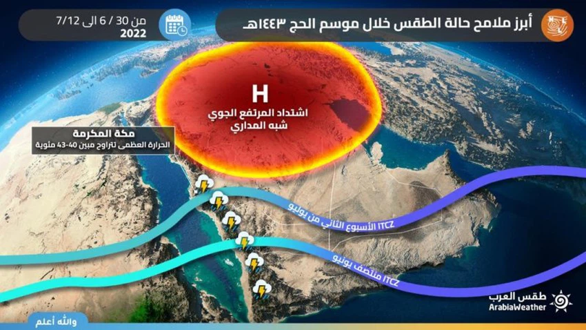 Progressivement au cours de la deuxième semaine de juillet, qui coïncide avec la saison du Hajj 1443 AH, les pluies s'intensifient et l'intensité des nuages orageux augmente sur les hauteurs sud-ouest du Royaume.