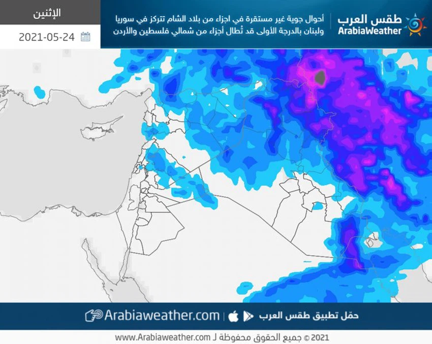 Météo arabe - Le Levant vit de la réalité du temps modéré, en raison de toute la région du Levant affectée samedi par une masse d'air modérée qui a entraîné une baisse tangible des températures et la prévalence d'une atmosphère printanière agréable dans la plupart régions, cette atmosphère devrait continuer à affecter la région lundi, si Dieu le veut. Mais il semble que les températures remontent à partir de mardi.