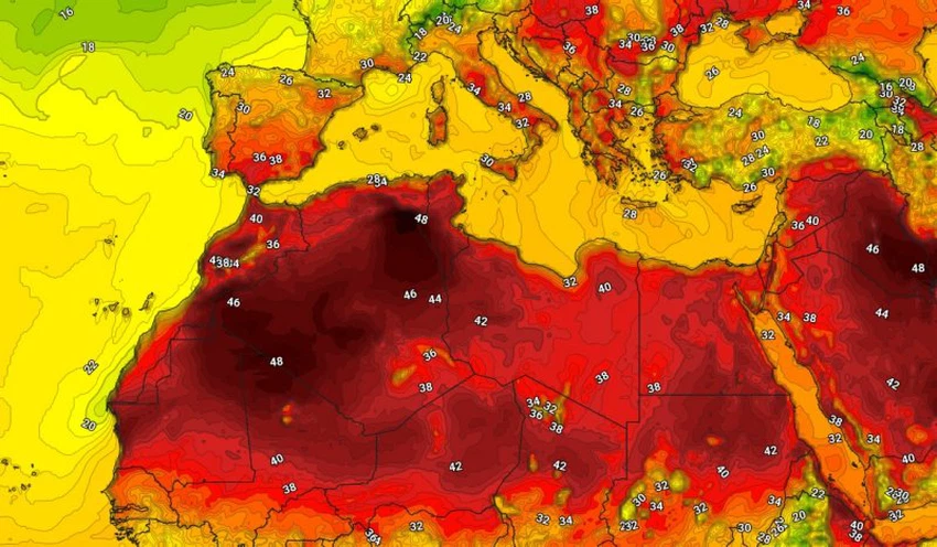 Dans le détail, les pays du Maghreb, notamment la Tunisie et l'Algérie, seront touchés dans les prochains jours par une canicule avec des températures bien supérieures à leurs moyennes de cette période de l'année. Le temps sera chaud à très chaud dans toutes les régions, avec des températures maximales approchant les 50 degrés Celsius dans plusieurs régions d'Algérie, notamment les régions désertiques, outre la Tunisie. Il n'est pas improbable que certaines régions enregistrent des températures records, tandis que les capitales et les zones côtières seront loin des effets directs de cette vague, car le temps sera modéré, avec des maximales comprises entre 26 et 30 degrés Celsius dans les capitales des pays. Maghreb et zones côtières.