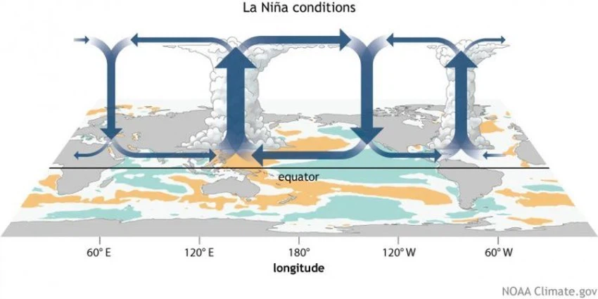 Les températures dans l’océan Pacifique tropical influencent grandement la régulation des courants atmosphériques mondiaux, en particulier le courant-jet dans l’hémisphère Nord. Lors d'un épisode El Niño, la trajectoire du courant-jet change pour s'orienter plus au sud, ce qui entraîne un changement des conditions météorologiques, notamment une probabilité accrue de fortes tempêtes sur la côte ouest de l'Amérique du Nord. En revanche, La Nina provoque une élévation du courant-jet vers le nord, entraînant un temps froid et sec dans certaines régions du monde.