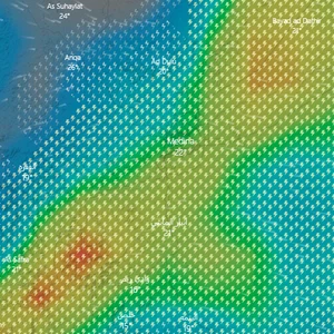 Les températures devraient chuter considérablement mercredi, coïncidant avec le passage du front d'air froid sur l'atmosphère de la région, et les températures maximales passeront de 36 degrés Celsius mardi à 28 degrés Celsius mercredi, soit une baisse de 8 degrés Celsius.