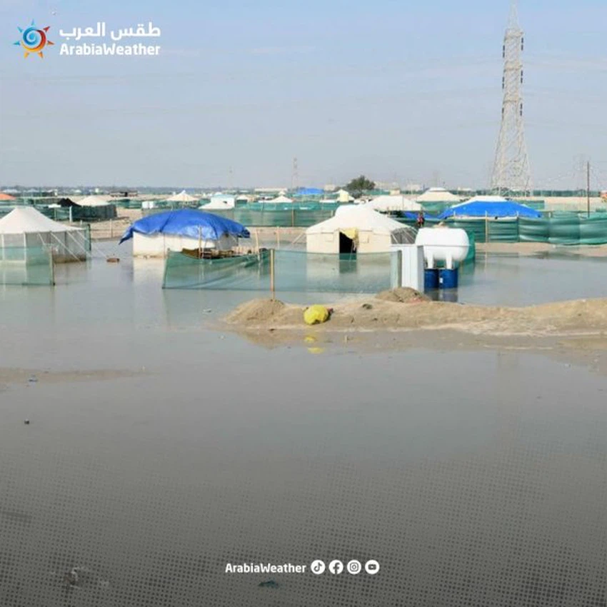 Météo arabe - Les fortes pluies dont le Koweït a été témoin hier pendant plus de 12 heures ont laissé leur marque sur le sol pour former un groupe de collectes d'eau (khabari) dans les zones sauvages, ce qui a entraîné l'inondation partielle de certains des camps de printemps.