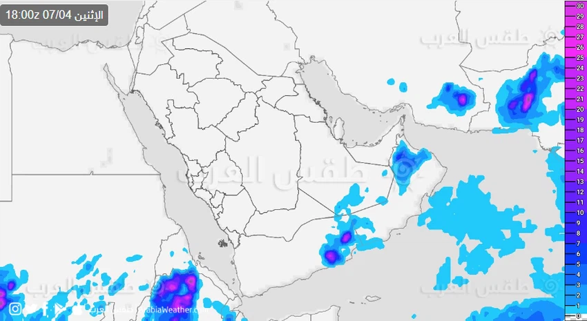Malgré la longue période de temps pour le flux tropical attendu, les premiers indicateurs sont considérés comme bons et prometteurs avec des orages, concentrés sur les hauteurs montagneuses du Sultanat d'Oman, en plus de certaines parties orientales des Émirats arabes unis, comme l'indique le modèle numérique américain. la possibilité que des nuages de pluie s'étendent vers des parties du Quartier Vide dans le Royaume, l'Arabie Saoudite et peut-être le Yémen.