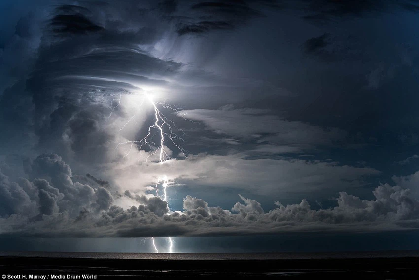 • Cumulus et nuages d'orage : La chaleur résultant de la surface de la Terre provoque un mouvement vertical de l'air vers le haut, et lorsque la quantité d'air se déplaçant vers le haut augmente, la force des turbulences de l'air augmente. Les cumulus sont généralement saturés d'eau, qui se transforme en froid. avec le froid, et ils contiennent des charges électriques élevées, signe de la foudre. La montée et la descente rapides de l'air provoquent des perturbations dans l'air entourant les nuages jusqu'à une distance de plusieurs dizaines de kilomètres.