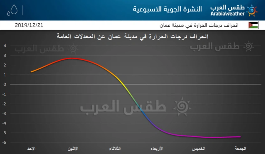 تبدأ الأنظمة الجوية بالتبدل والتغير بشكل كبير لصالح الحوض الشرقي للبحر الأبيض المتوسط بما فيها منطقة بلاد الشام والمملكة، اذ يتوقع ان يرتفع الضغط الجوي في مناطق هامة من شمال افريقيا وجنوب وغرب القارة الأوروبية،