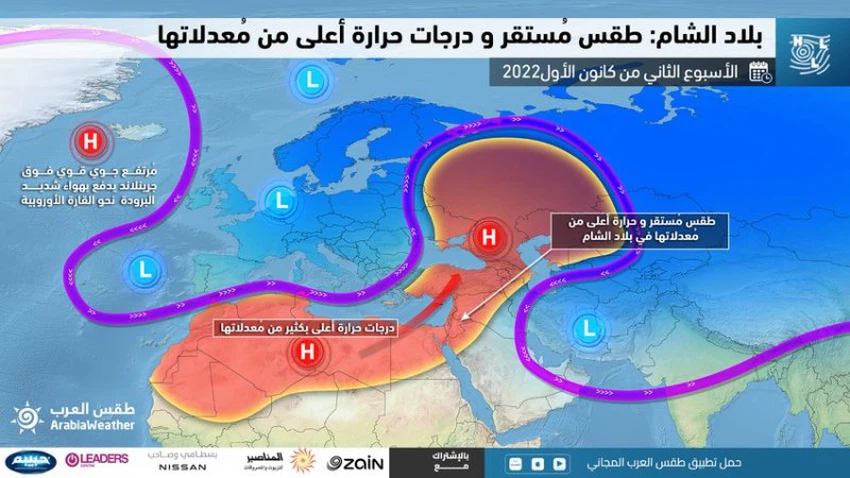 Météo de l'Arabie - Le Royaume et le Levant n'ont pas été touchés par des événements météorologiques significatifs depuis le début du mois de décembre, malgré l'entrée en vigueur de la saison climatique hivernale, surtout depuis les sorties des cartes météorologiques exploitées par le centre régional "Météo arabe" car la météorologie et les prévisions météorologiques indiquent la survie des pays du bassin oriental de la mer. La Méditerranée, y compris le Royaume, est sous l'influence de courants d'air plus chauds que d'habitude et d'une atmosphère stable au cours des prochains jours, si Dieu le veut.