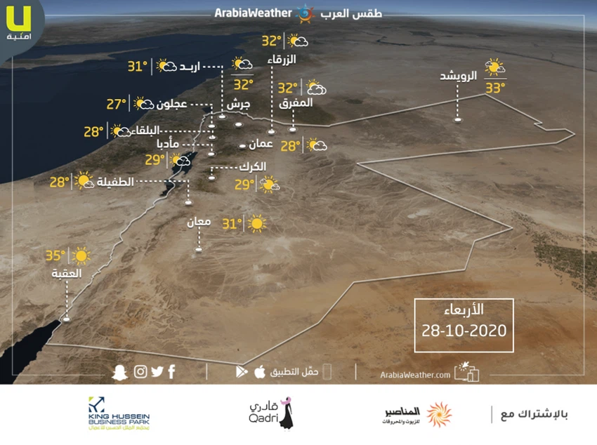درجة الحرارة العظمى المتوقعة في عمان: °28