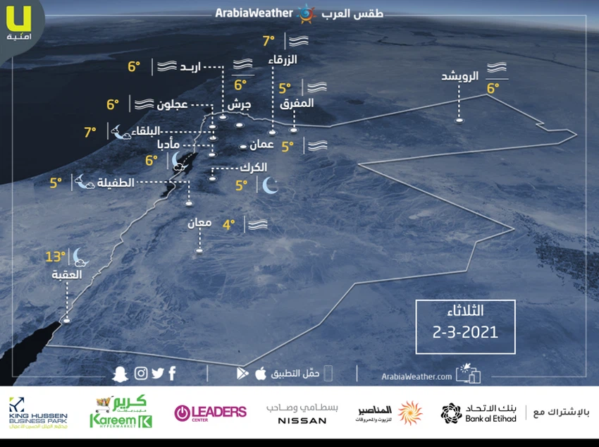 حالة الطقس ودرجات الحرارة المتوقعة في الأردن يوم الثلاثاء: