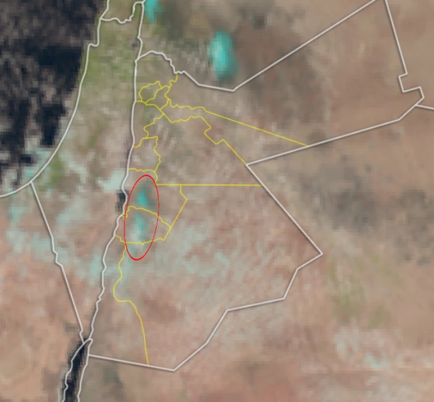 Où les images satellites montraient un instantané de la neige accumulée sur les hauteurs de Karak et Tafila, à l'extrême sud du Royaume.