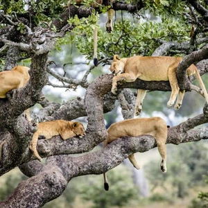 وقال كلوو: "أكد لنا مرشدنا السياحي أنه مشهد غير معتاد أن تصعد الأسود فوق الأشجار لتنام ويعلو شخيرها، وخاصة تواجد ما يقرب من 10 أسود من قطيع واحد".