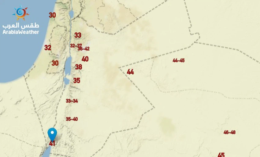 و يبقى الطقس حاراً إلى شديد الحرارة بوجهٍ عام في معظم مناطق المملكة مع اقتراب درجات الحرارة العظمى للـ 40 درجة مئوية في العديد من المُدن و القرى بما فيها العاصمة عمان.