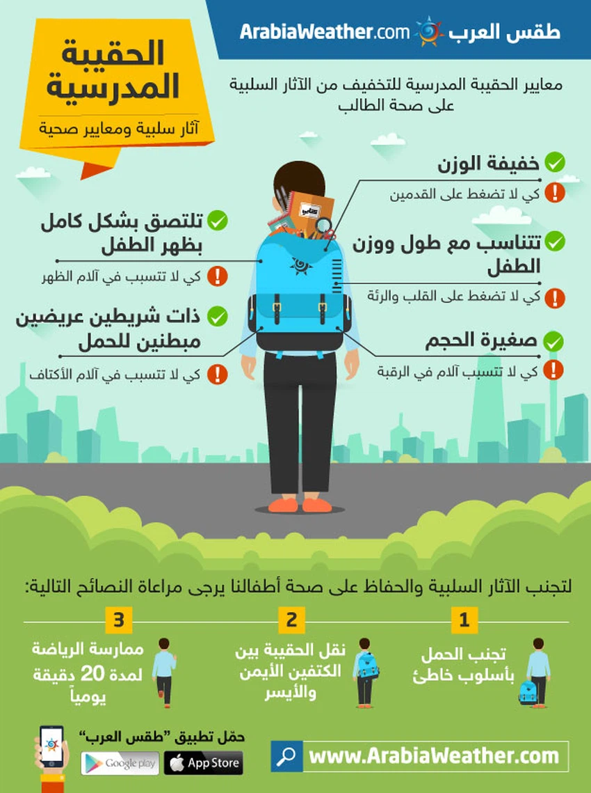 بالإنفوجرافيك: المعايير الصحية للحقيبة المدرسية