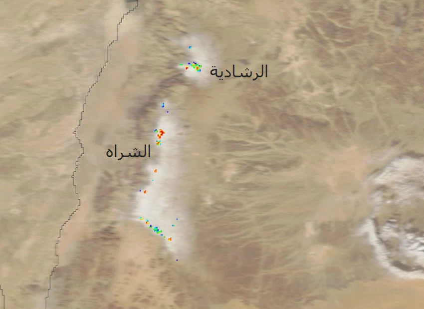 في مرتفعات الطفيلة و جبال الشراه، ما زالت مساحة الغطاء الثلجي واسعة و لكنها لم تعد سميكةً.